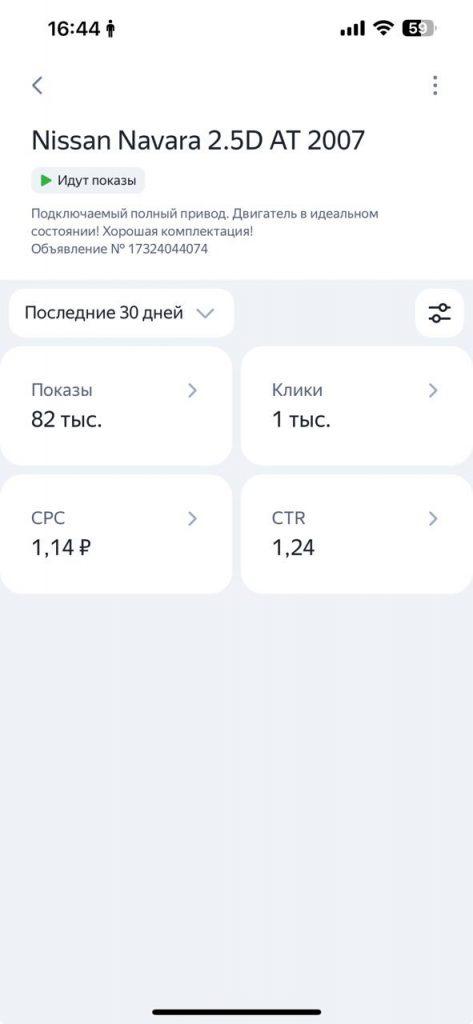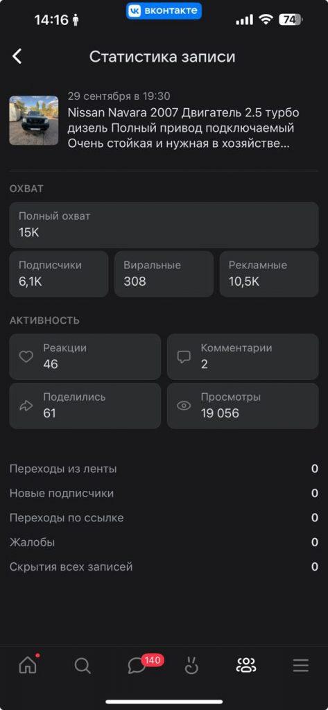 Итог: Пост с Nissan Navara 2007 получил 101 тысячу просмотров что является в 15+ раз больше показов чем “Бесплатная публикация авто”